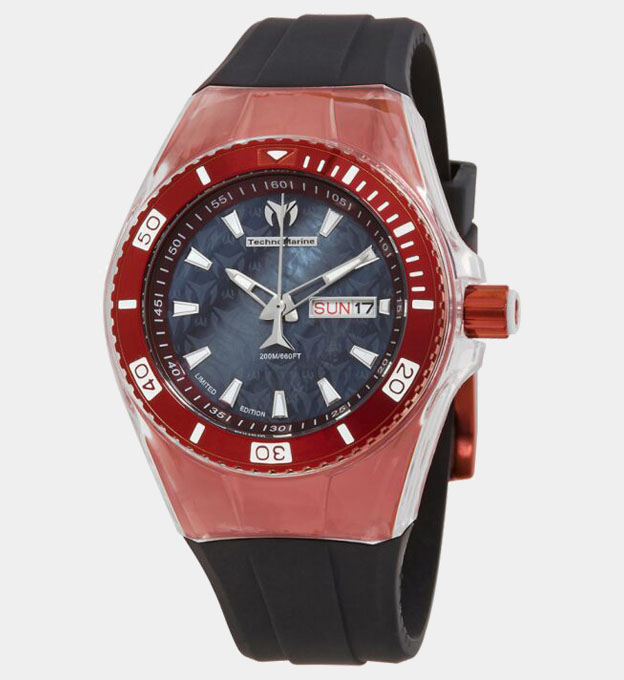 • The Technomarine Cruise Series Watch Features A Stainless Steel 40 Mm Case A Black Dial And A Flame Fusion Crystal. The 24 Mm Silicone Band Is Fitted With A Buckle Clasp . This Beautiful Wristwatch, Powered By A Hattori Caliber Pc33, Japan Made Quartz Movement, Supports: Date, Day, Hour, Minute, Second Functions. This Watch Has A Water Resistance Of Up To 660 Feet/200 Meters, Suitable For Short Periods Of Recreational Swimming. This Stylish Timepiece Is Sure To Complete Any Womans Collection.